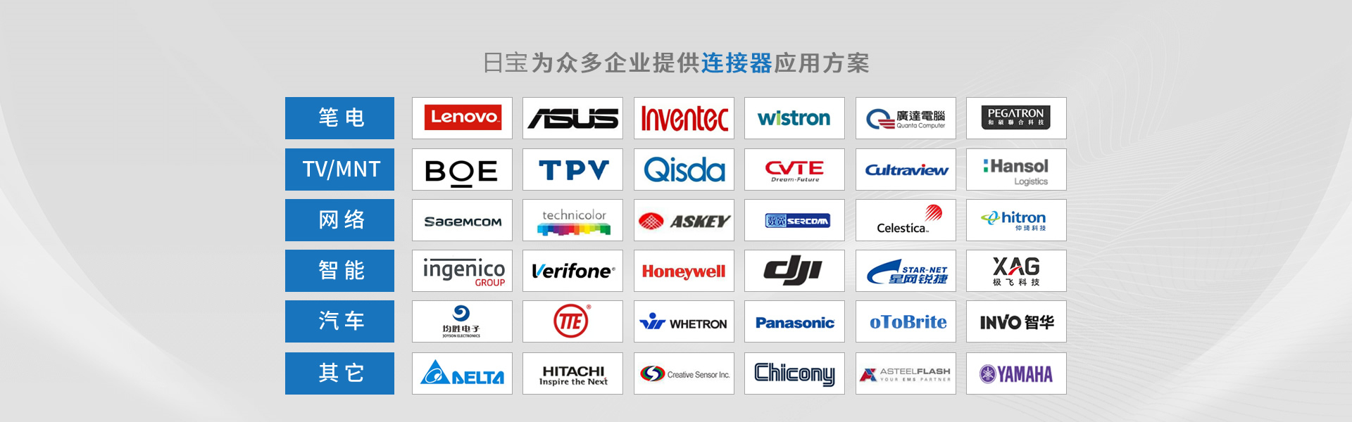 深圳市日寶電子科技有限公司創(chuàng)立于2015年,總部位于蘇州吳江區(qū),總部公司成立于2005年,是一家專業(yè)從事精密連接器設(shè)計(jì)、制造及銷售的高新科技企業(yè)。產(chǎn)品廣泛應(yīng)用于消費(fèi)電子、汽車電子、網(wǎng)絡(luò)通訊及工業(yè)電子設(shè)備、軍工、航天航空、醫(yī)療器械等領(lǐng)域。目前公司產(chǎn)品除本土市場(chǎng)外,更遠(yuǎn)銷歐、美、日等海外市場(chǎng)。 日寶電子注重長遠(yuǎn)發(fā)展,先后取得ISO9001/14001質(zhì)量與環(huán)境管理體系、IATF16949汽車質(zhì)量管理體系、ISO13485醫(yī)療器械質(zhì)量管理體系、UL,GB/T29490知識(shí)產(chǎn)權(quán)管理體系等認(rèn)證, 并加入HDMI、USB等協(xié)會(huì)。 為提升企業(yè)核心競爭力,公司大力推進(jìn)信息化與工業(yè)化的兩化融合建設(shè),先后導(dǎo)入ERP、PLM、CRM、SRM、MES及OA等系統(tǒng)管理軟件,不斷自我提升,為打造新一代智能制造標(biāo)桿企業(yè)不懈努力。 日寶電子擁有業(yè)界專業(yè)的電氣與機(jī)構(gòu)研發(fā)技術(shù)團(tuán)隊(duì),相繼獲得260余項(xiàng)發(fā)明和實(shí)用新型專利,在這日新月異的科技時(shí)代,堅(jiān)持以技術(shù)創(chuàng)新為導(dǎo)向,深度服務(wù)客戶...